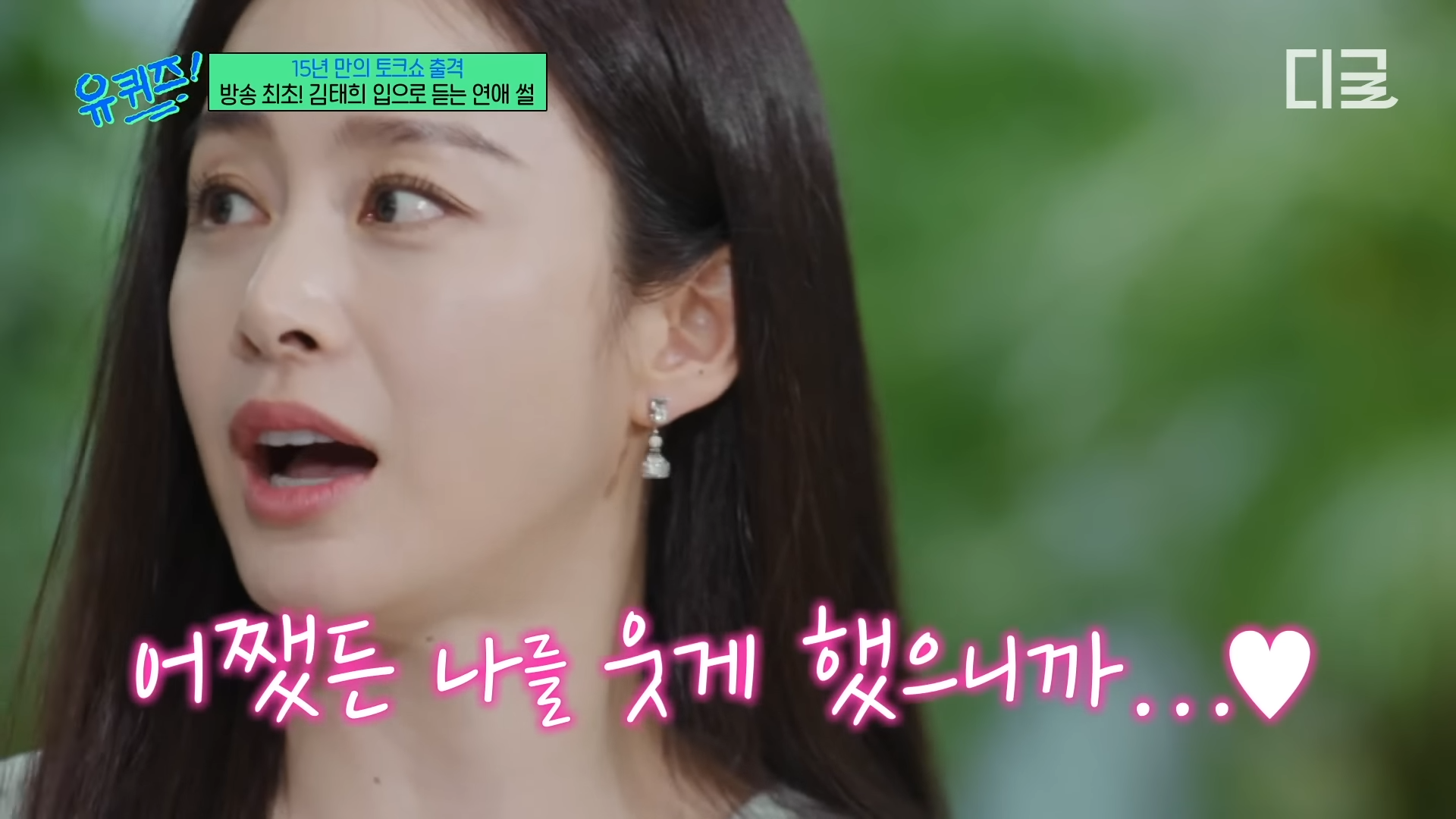특히 이번 유퀴즈에서는 남편 비가 그녀에게 책과 손편지를 선물하며 다가온 이야기를 공개했는데, “그 편지를 읽고 나도 모르게 먼저 문자를 보냈다”는 말은 김태희의 감성적인 면모를 잘 보여줍니다.